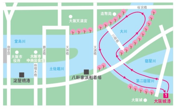 大阪城公園駅すぐの大阪城港が発着地なので、公園内の桜とセットで楽しむことで、陸上からの桜、水上からの桜、2つの目線からのお花見が楽しめるのも魅力の一つです。