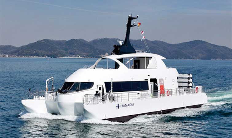 大阪初就航となる水素とバイオディーゼル燃料を使用した国内初の旅客船「HANARIA」