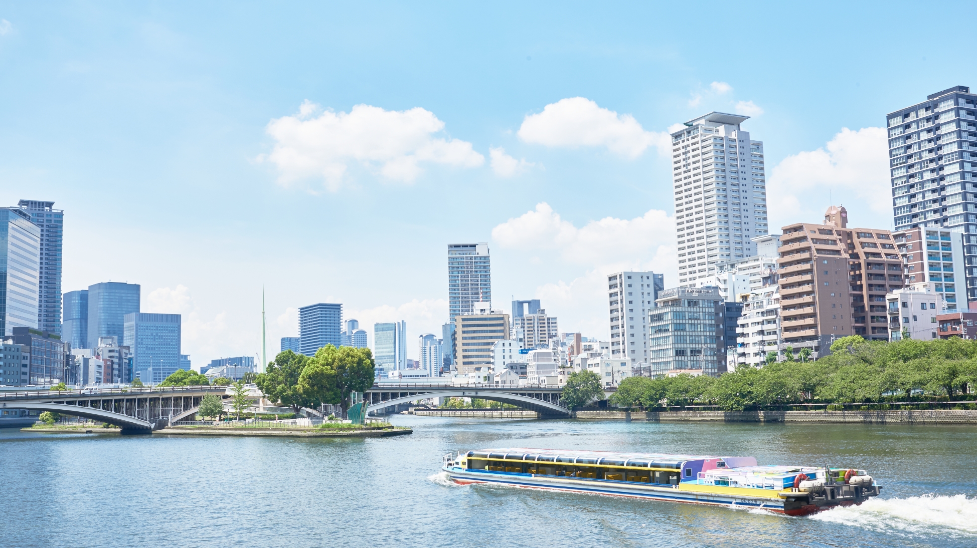 水上から巡る定番ルート大阪城、中之島、大阪市中央公会堂など、歴史と現代が共存するエリアを、水面からゆっくりと巡るクルーズです。ビル群の間を流れる大川を進みながら、橋をくぐったり、水面に映る街の姿を眺めたりと、地上からは見られない大阪の新しい一面に出会えます。観光地を効率よく巡りながら、川の流れに身をゆだねるような落ち着いた時間を過ごせるのが、アクアライナーの大きな魅力です。