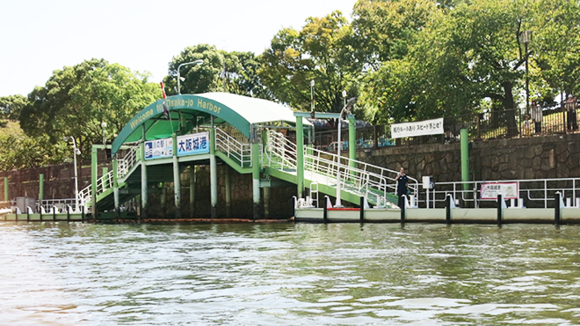 なお、八軒家浜船着場の桟橋はスロープがありますので、車椅子に乗ったまま乗降口までお進みいただくことが可能です。