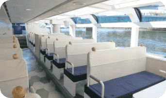 なお、全便指定席となりますので、ご乗船の際は事前予約をおすすめすると共に、予約時に車椅子をご利用の旨をお申し出いただけると幸いです。