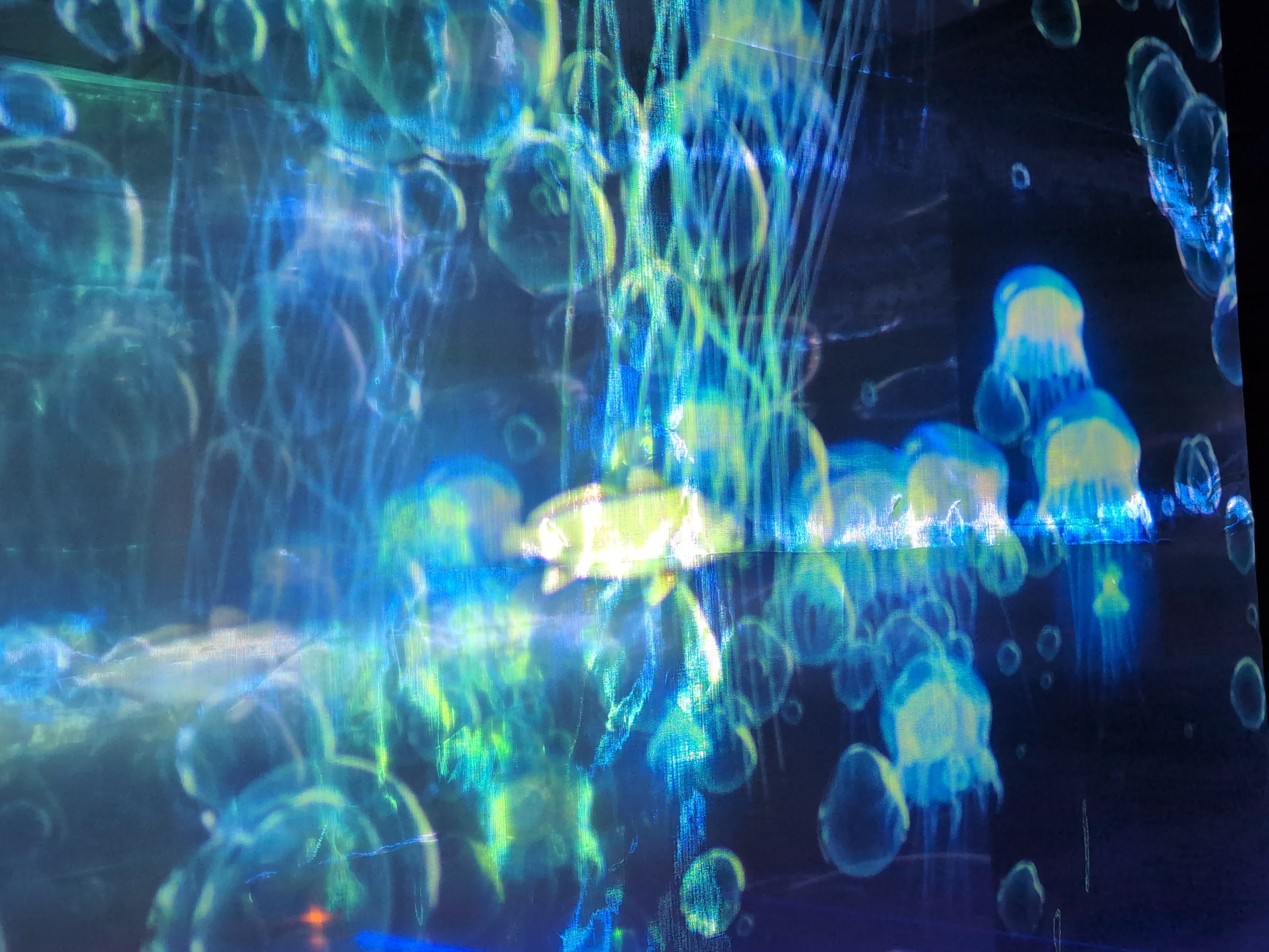 「海」か「宇宙」か?「マクロ」か「ミクロ」か?様々な色彩の光の波に満たされた不思議な空間